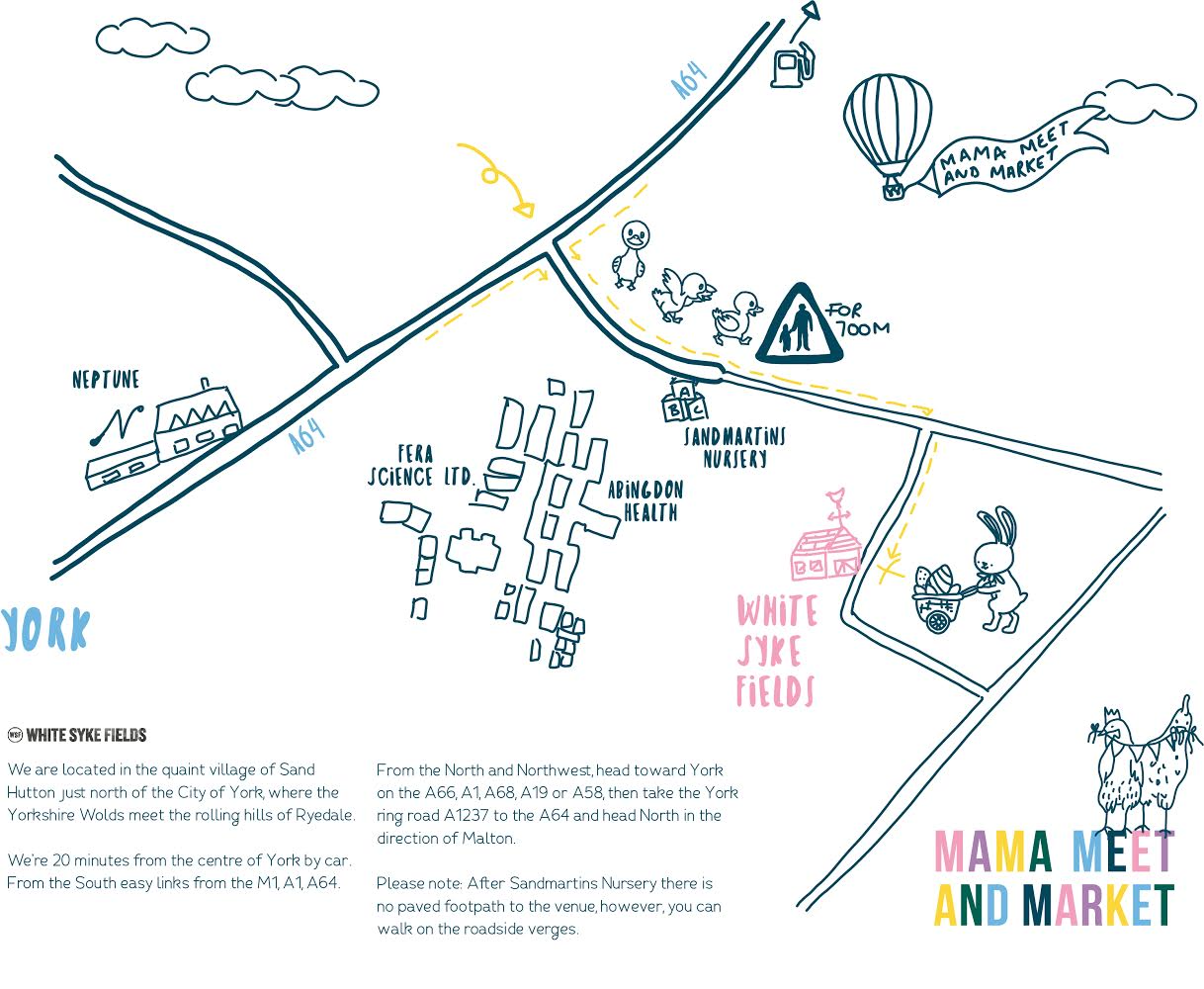 As we draw closer to the Yorkshire Family Market, we advise those visiting from afar download our map to help navigate around the area. The venue (seen below in Pink) is relatively easy to find and there will be signage to help you find your way as you draw closer. This event offers free onsite parking but please be patient as approaching as we as an event will be aiding the parking.